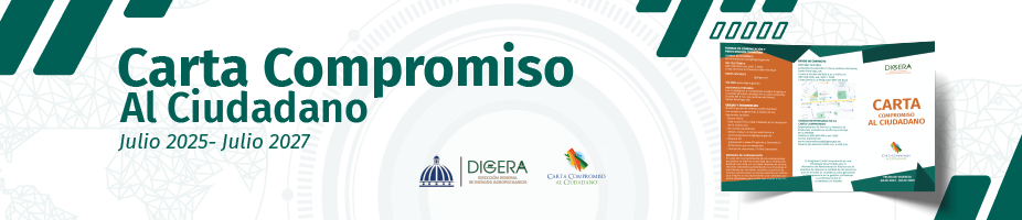 La DIGERA lanza la primera versión de la Carta Compromiso al Ciudadano en Julio de 2023, aprobada por el Ministerio de Administración Pública y el Sr. Kohuris Henríquez Disla, director general de la Dirección General de Riesgos Agropecuarios, con una vigencia de dos años hasta su revisión y actualización en julio de 2025.
