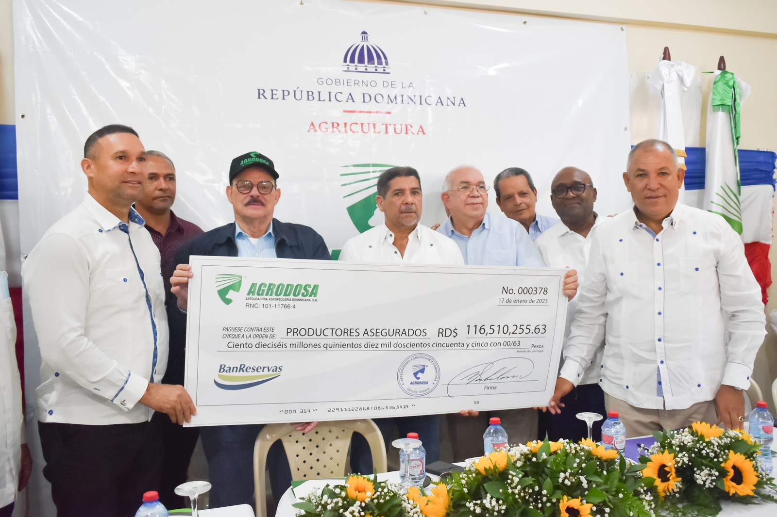 El pago fue realizado por La Aseguradora Agropecuaria Dominicana (AGRODOSA), única Compañía de Seguros en la República Dominicana, cuya misión principal es ofrecer productos de Seguros Agrícolas y Pecuarios, para respaldar a los productores ante las pérdidas ocasionadas por los riesgos climáticos como: sequías, huracanes, lluvias en exceso, fuertes vientos, granizadas e inundaciones; garantizando su inversión y permitiendo una rápida recuperación del productor y de la actividad agropecuaria.